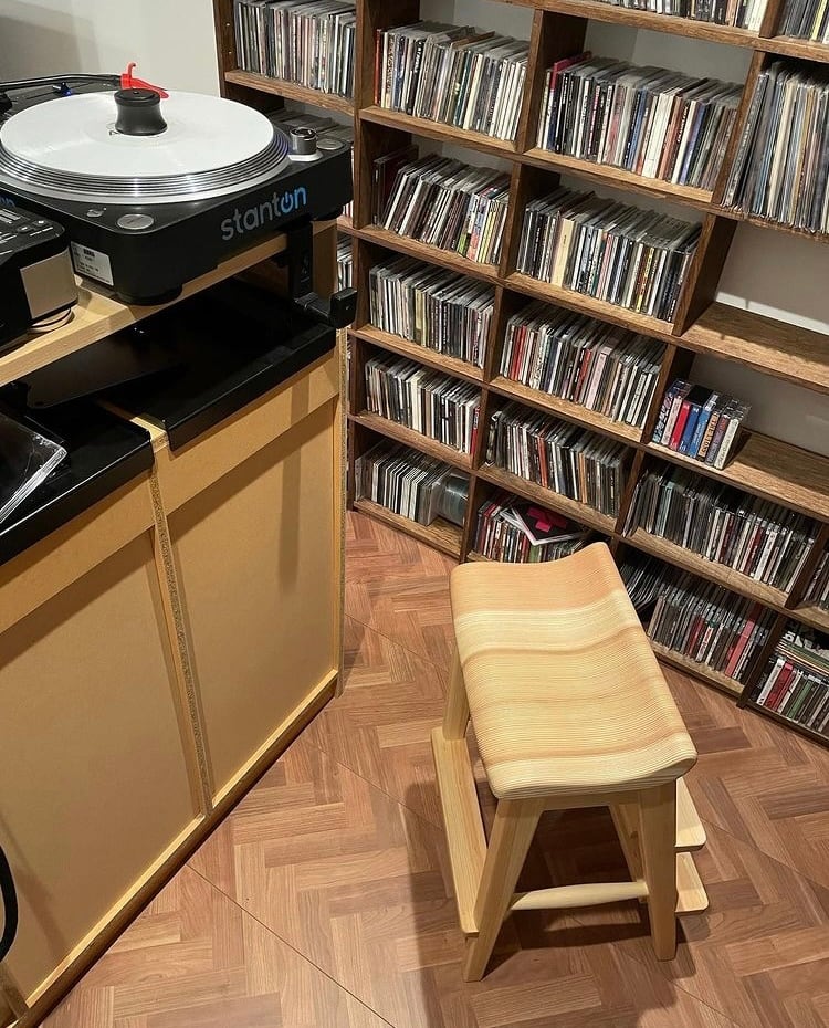 ◯DJブース用に購入。座面滑らかで、木の香りも良く、愛嬌のあるフォルムで最高!背面にステップ付いているので、高いところのレコードも簡単に取れる!これはとてもいい買い物でした。(2021.8.17)